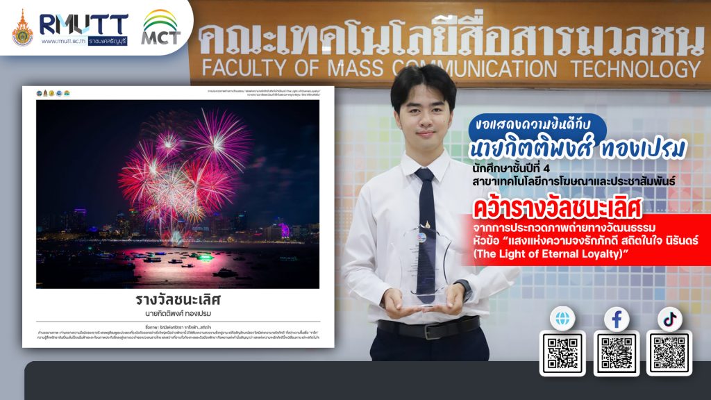 ประกาศประกวดราคาซื้อชุดผลิตรายการทางภาพและเสียงเพื่อทำการออกอากาศออนไลน์ จำนวน ๑ ชุด ด้วยวิธีประกวดราคาอิเล็กทรอนิกส์ (e-bidding)13 September 2023ประกาศคณะกรรมการอำนวยการเลือกตั้ง กรรมการประจำคณะจากคณาจารย์ประจำ25 October 2023 20 September 2023 Categories News Release Tags ประกาศรับสมัครสอบคัดเลือกบุคคลเพื่อบรรจุเป็นพนักงานพิเศษเงินรายได้ ตำแหน่งนายช่างเทคนิค และตำแหน่งพนักงานขับรถยนต์ รายละเอียดประกาศรับสมัครตำแหน่ง ช่างเทคนิค รายละเอียดประกาศรับสมัครตำแหน่งพนักงานขับรถยนต์ จ้างเหมา ผู้สนใจสามารถติดต่อขอรับและยื่นใบสมัครได้ที่ คณะเทคโนโลยีสื่อสารมวลชน ชั้น 1 มหาวิทยาลัยเทคโนโลยีราชมงคลธัญบุรี โทรศัพท์ 02 549 4500 ตั้งแต่วันที่ 18 – 26 กันยายน 2566 Post Views: 69 Share0 Related posts11 March 2026ภาพกิจกรรมโครงการปัจฉิมนิเทศส่งเสริมสมรรถนะผู้ประกอบการและทักษะวิชาชีพก่อนสำเร็จการศึกษาRead more11 March 2026นักศึกษาคณะเทคโนโลยีสื่อสารมวลชน บินลัดฟ้าสู่ญี่ปุ่น ร่วมโครงการแลกเปลี่ยนวิชาการ Asia Student Workshop 2026 ณ Chiba UniversityRead more11 March 2026ขอแสดงความยินดีกับ นายกิตติพงศ์ ทองเปรม ได้รับ รางวัลชนะเลิศ จากการประกวดภาพถ่ายทางวัฒนธรรมRead more