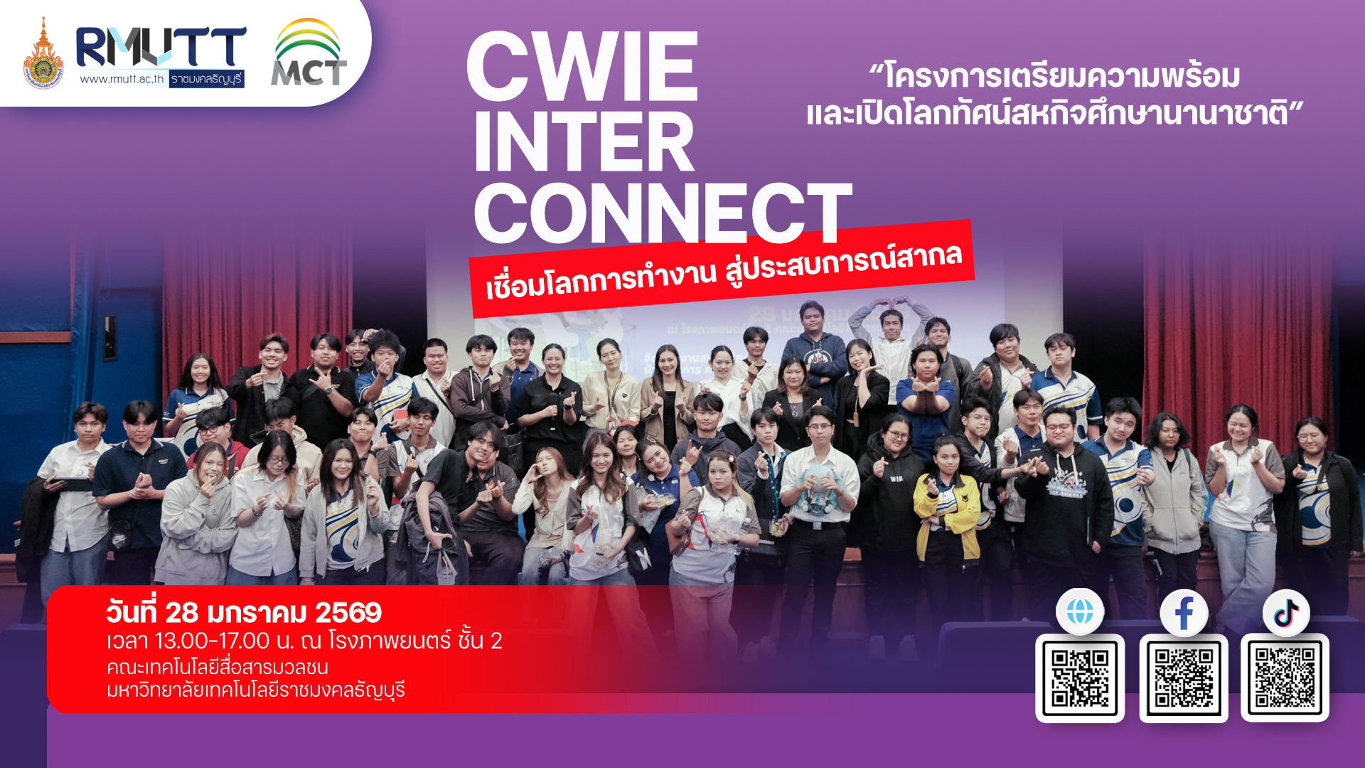 สำเร็จไปเรียบร้อย! กับกิจกรรมเปิดโลกทัศน์สู่เส้นทางการฝึกสหกิจต่างประเทศในโครงการ “CWIE Inter Connect: เชื่อมโลกการทำงาน สู่ประสบการณ์สากล” ที่จัดขึ้นเมื่อวันที่ 28 มกราคม 2568 ณ โรงภาพยนตร์ ชั้น 2 คณะเทคโนโลยีสื่อสารมวลชน มทร.ธัญบุรี บรรยากาศเต็มไปด้วยพลังและแรงบันดาลใจ ข้อมูลของทุนสนับสนุนจากคณะและมหาวิทยาลัย รวมถึงสถานประกอบการและมหาวิทยาลัยเครือข่ายในต่างประเทศ ที่ช่วยให้น้องๆ พร้อมก้าวสู่การฝึกงานต่างประเทศ งานนี้จัดเต็มทั้งความรู้และแนวทางเพื่อผลักดันให้นักศึกษา MCT ก้าวไปเป็นนวัตกรสื่อสารในระดับสากลอย่างมั่นใจ ส่วนใครที่พลาดไป ไม่ต้องเสียใจ! สามารถติดต่อสอบถามข้อมูลสหกิจศึกษานานาชาติเพิ่มเติมได้ที่งานสหกิจศึกษา คณะเทคโนโลยีสื่อสารมวลชนได้เลย