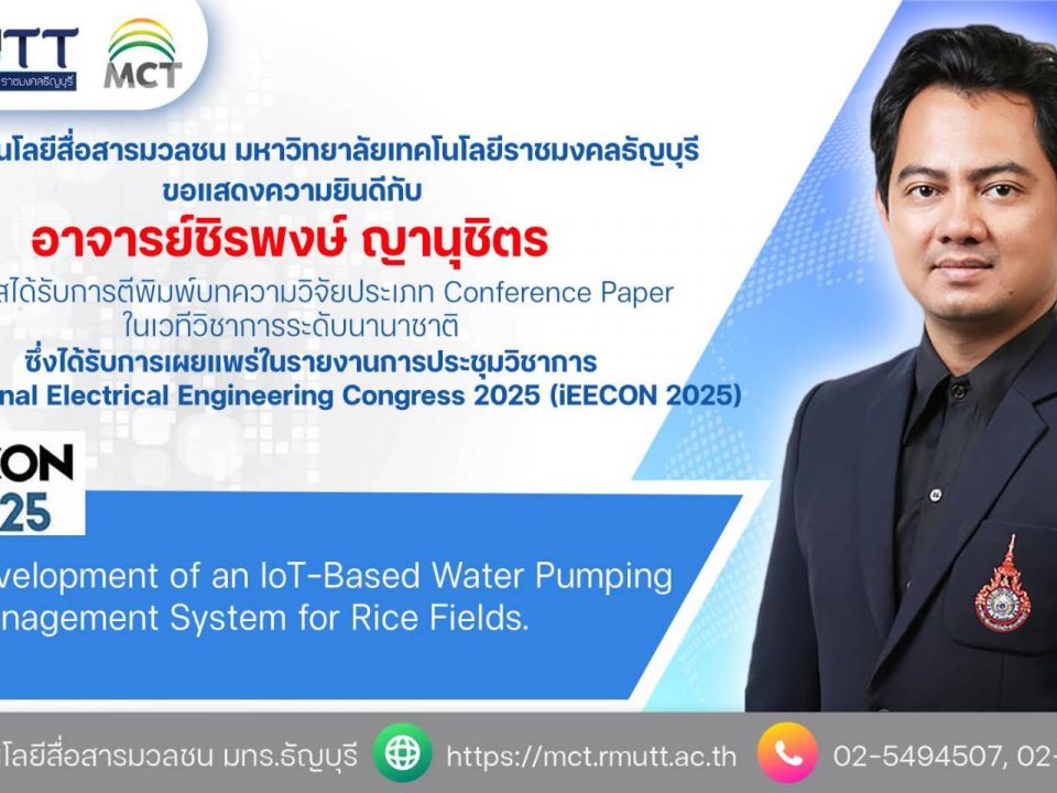 ขอแสดงความยินดีกับ อาจารย์ชิรพงษ์ ญานุชิตร ในโอกาสได้รับการตีพิมพ์บทความวิจัยประเภท Conference Paper ในเวทีวิชาการระดับนานาชาติ เรื่อง “Development of an IoT-Based Water Pumping Management System for Rice Fields.