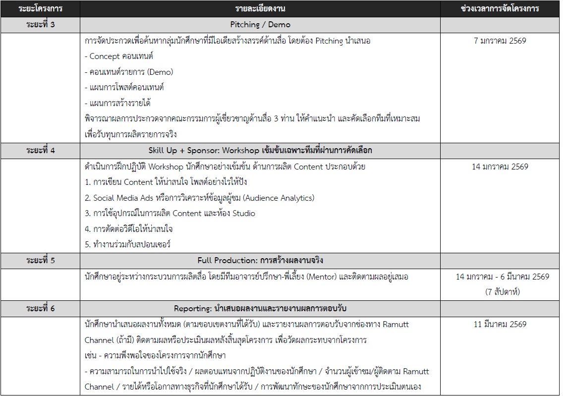 5. Creative Playground รายการสร้างสรรค์อื่น ๆ ที่สื่อสารให้เห็นถึงความบันเทิง หรือมีสาระ อย่างสร้างสรรค์ เช่น เกมสนุกในรั้วมหาวิทยาลัย, รีวิวคาแรกเตอร์เพื่อนในคณะ, วัดใจเพื่อนแบบครีเอทีฟ, คอนเทนต์ถาม–ตอบเรื่องมหาวิทยาลัย, ไอเดียสนุก ๆ ที่สะท้อนชีวิตนักศึกษาในแบบคุณ เป็นต้น