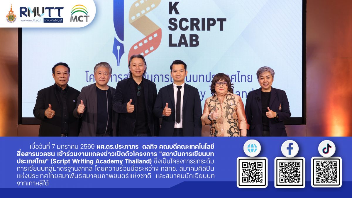 งานแถลงข่าวเปิดตัวโครงการ “สถาบันการเขียนบทประเทศไทย” (Script Writing Academy Thailand) เมื่อวันที่ 7 มกราคม 2569 ผศ.ดร.ประภาภร ดลกิจ คณบดีคณะเทคโนโลยีสื่อสารมวลชน เข้าร่วมงานแถลงข่าวเปิดตัวโครงการ “สถาบันการเขียนบทประเทศไทย” (Script Writing Academy Thailand) ซึ่งเป็นโครงการยกระดับการเขียนบทสู่มาตรฐานสากล โดยความร่วมมือระหว่าง กสทช. สมาคมศิลปินแห่งประเทศไทย สมาพันธ์สมาคมภาพยนตร์แห่งชาติ และสมาคมนักเขียนบทจากเกาหลีใต้ […]