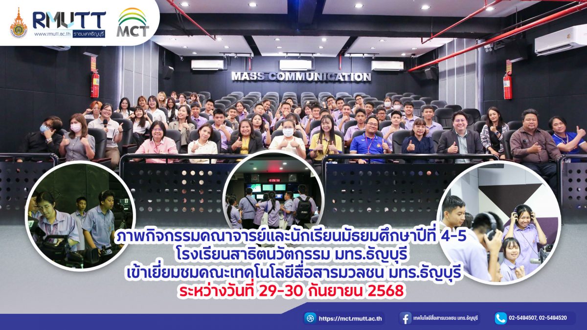 26 กันยายน 2025คณาจารย์และนักเรียนมัธยมศึกษาปีที่ 4-5 โรงเรียนสาธิตนวัตกรรม มทร.ธัญบุรี เข้าเยี่ยมชมคณะเทคโนโลยีสื่อสารมวลชน มทร.ธัญบุรี