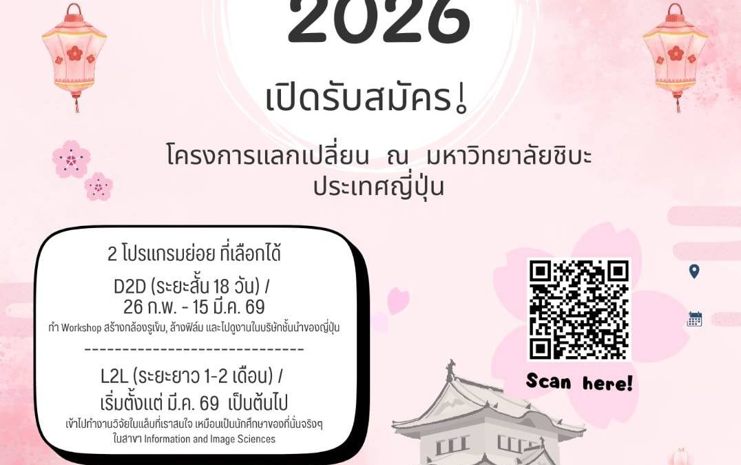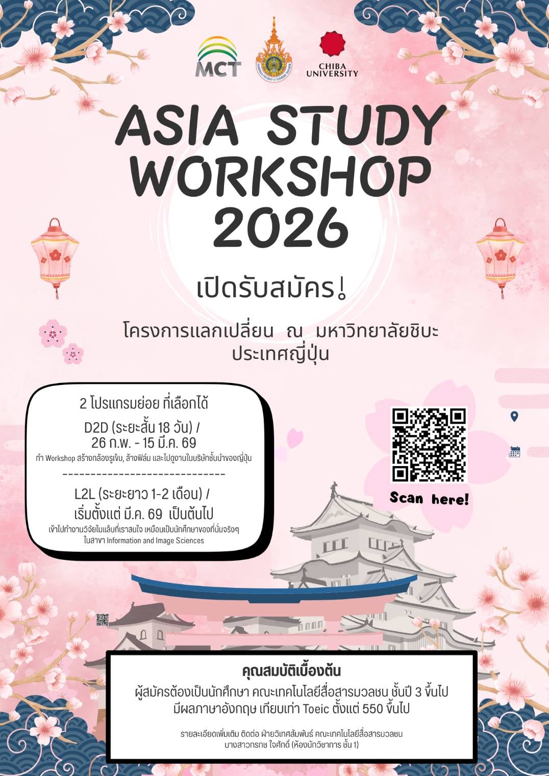 ดร.ชาลิน นุกูล เผยแพร่ผลงาน Monograph เรื่อง Third Sex : Beyond a Gender Binary in Thai Culture and Films ผลงานวิชาการที่ได้รับการยอมรับในระดับนานาชาติ24 ตุลาคม 2025 4 พฤศจิกายน 2025 Categories ข่าวประชาสัมพันธ์ ข่าววิเทศสัมพันธ์ Tags Chiba Universityjapanโครงการแลกเปลี่ยน ขอเชิญชวนนักศึกษาสมัครโครงการ ASIA STUDY WORKSHOP 2026 โครงการแลกเปลี่ยน ณ มหาวิทยาลัยชิบะ ประเทศญี่ปุ่น >>> รายละเอียดการรับสมัครสามารถดูได้ที่โปสเตอร์ <<< Tags: Chiba University, japan, โครงการแลกเปลี่ยน Share0 Related posts16 ตุลาคม 2025ร่วมพูดคุยกับ ผศ.เบญนภา พัฒนาพิภัทร รองคณบดีฝ่ายวิจัยพัฒนาและบริการวิชาการ ประเด็นมุมมองและวิสัยทัศน์ด้านงานวิจัยและบริการวิชาการRead more14 ตุลาคม 2025ประชุมจัดการเรียนการสอนรายวิชาที่ส่งเสริมให้นักศึกษาเป็น ผู้ประกอบการและนวัตกรด้านสื่อดิจิทัล พร้อมวางแผนดำเนินโครงการ สถานีสื่อดิจิทัล ซีซั่น 3Read more9 ตุลาคม 2025ขอแสดงความยินดีกับ ผู้ช่วยศาสตราจารย์สุพรรณิการ์ ย่องซื่อ เป็นผู้ผ่านเกณฑ์การประเมินมาตรฐานอาจารย์ด้านการเรียนการสอนมืออาชีพRead more