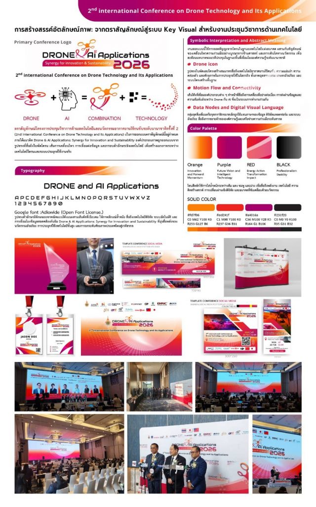 - ผศ.สุชาดา คันธารส และผศ.ดร.ศรชัย บุตรแก้ว ผลงาน: การสร้างสรรค์อัตลักษณ์ภาพ: จากตราสัญลักษณ์สู่ระบบ Key Visual สำหรับงานประชุมวิชาการด้านเทคโนโลยี