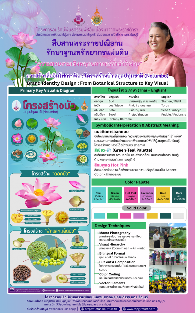 - ผศ.ดร.วิภาวี วีระวงศ์ และคุณเบญสิร์ยา ปานปุญญเดช ผลงาน: การสร้างสื่ออินโฟกราฟิก เพื่อให้ความรู้โครงสร้างบัว สกุลปทุมชาติ (Nulumbo)