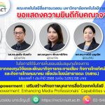 ขอแสดงความยินดีกับคณาจารย์คณะเทคโนโลยีสื่อสารมวลชน ในโอกาสได้รับการเห็นชอบสนับสนุนทุนโครงการ “AI Media Empowerment : เสริมสร้างศักยภาพบุคลากรสื่อด้วยเทคโนโลยี AI อย่างมีจริยธรรม” วงเงิน 3,053,138 บาท